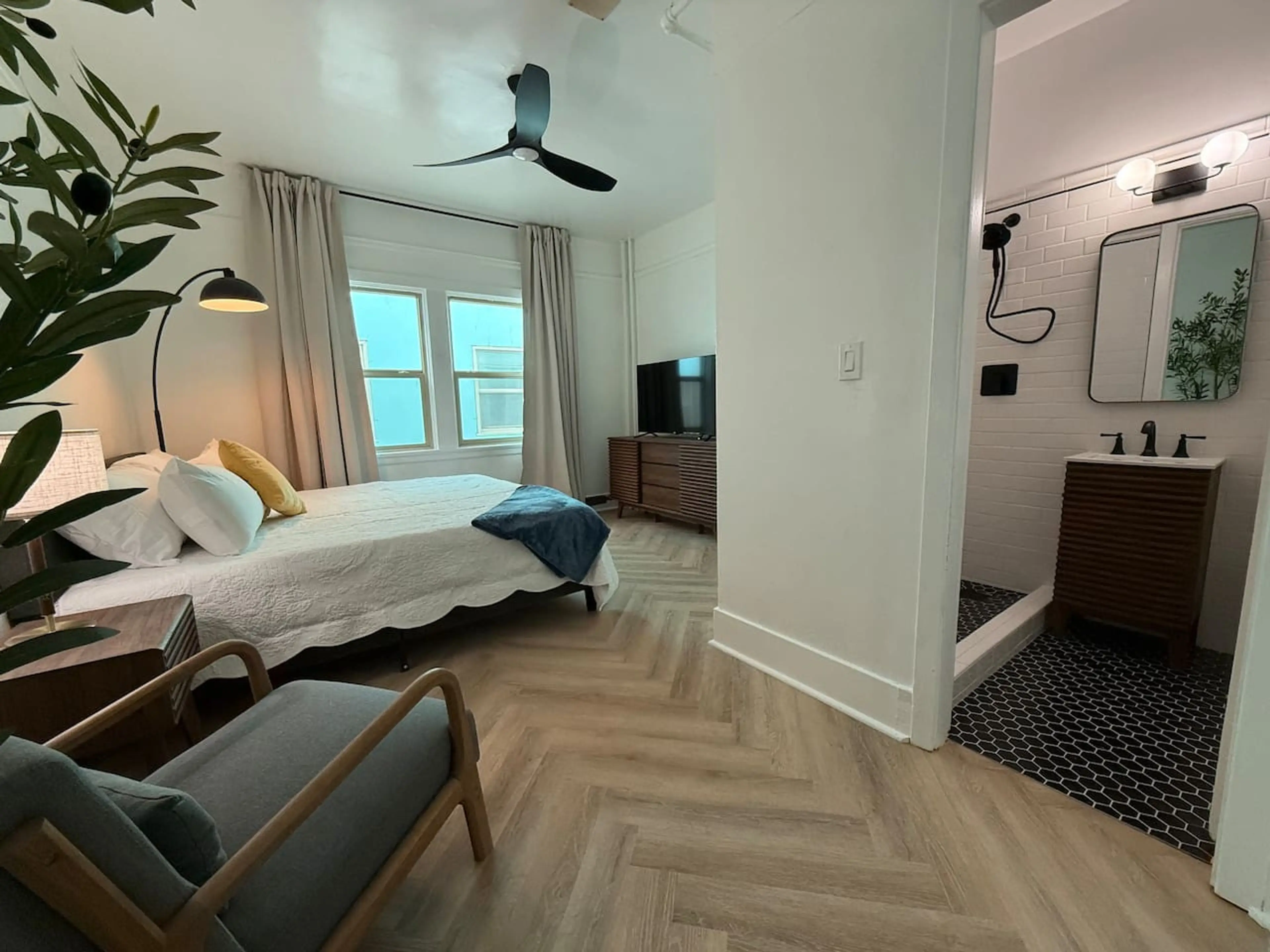 Enjoy this Mid Century Modern inspired 2 bedroom in downtown Klamath Falls. This dual master setup includes a 70" LED TV and two 50" LED Tv's. Located across the new Klamath Commons Park downtown. Short walk to bars and restaurants.